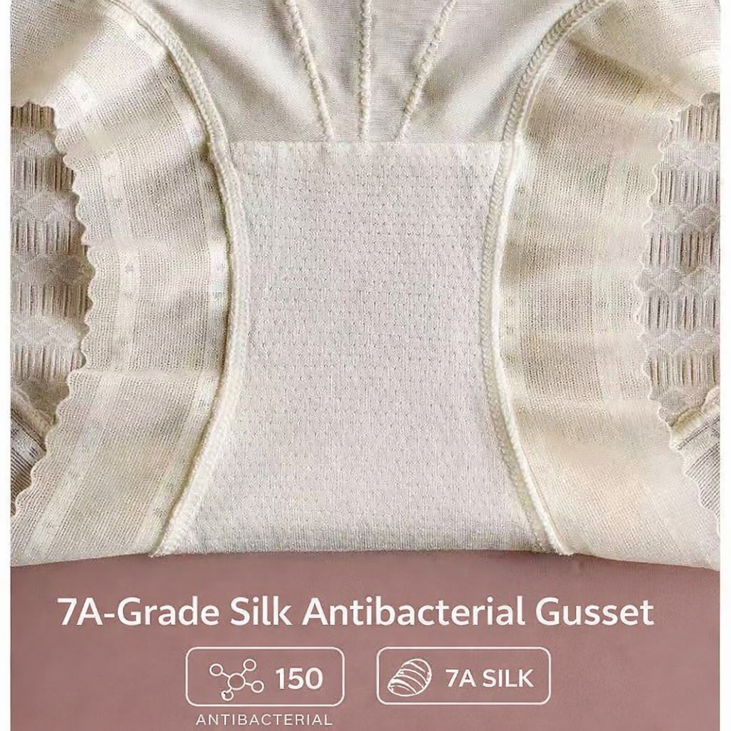 • Gusset: Breathable, antibacterial mulberry silk with viscose & spandex – gentle on skin.